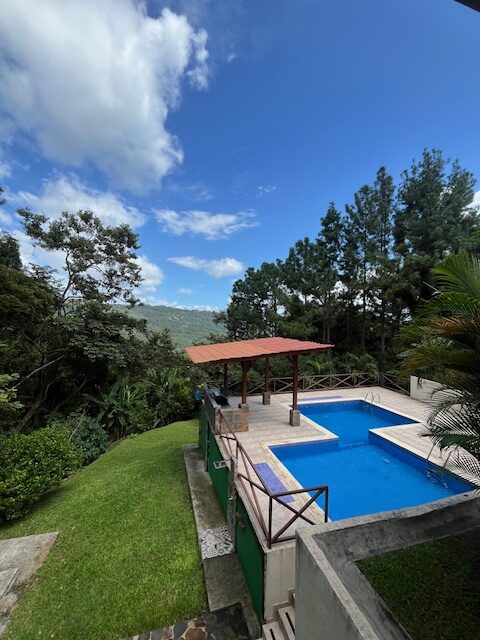 Hermosa Casa de Campo, rodeada de muchos arboles, vistas a las montañas con gran zonas comunes, cascadas, ríos, ruta de senderismo, parques, miradores, flores y arboles.