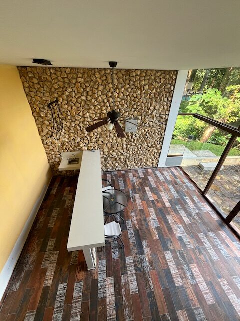 Sótano area totalmente cerrada con puertas corredizas de vidrios y acceso a la piscina